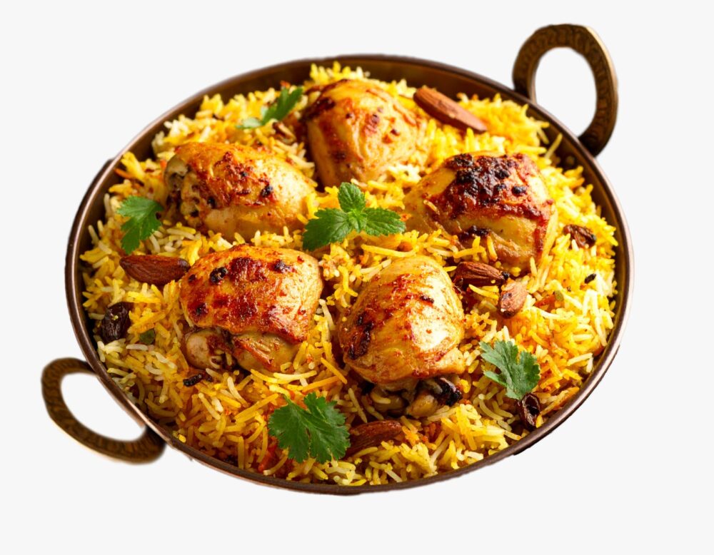 Fragrant basmati rice layered with spiced boneless chicken, herbs, and aromatic seasoning
