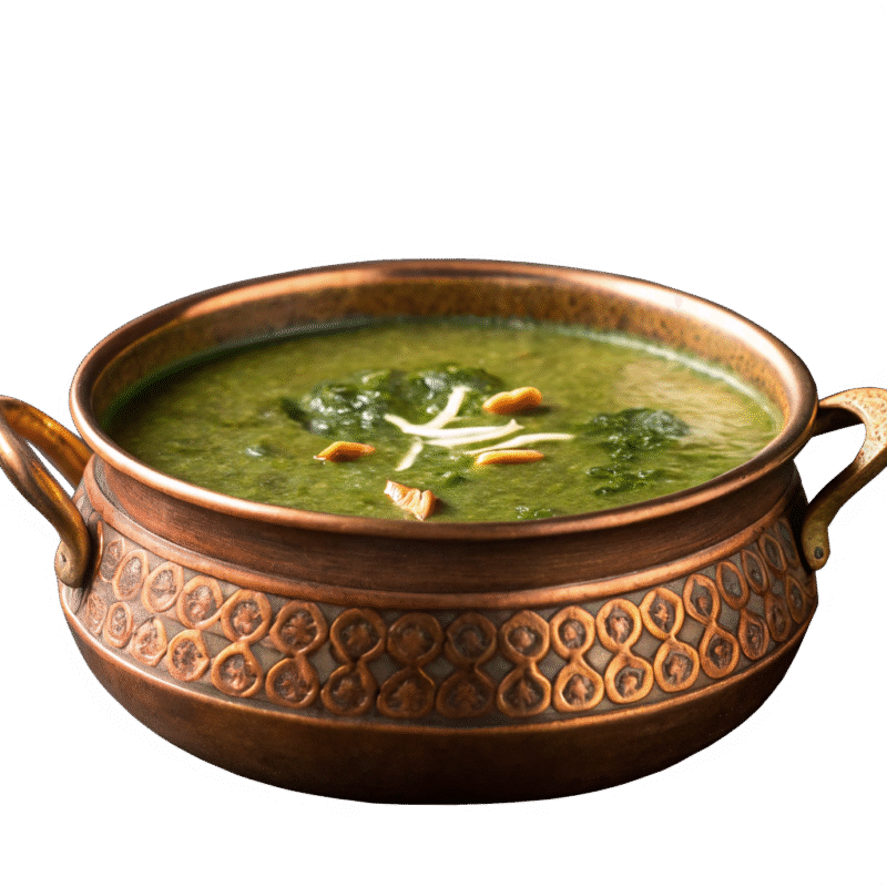 Potatoes and spinach cooked together with garlic, ginger, and traditional spices