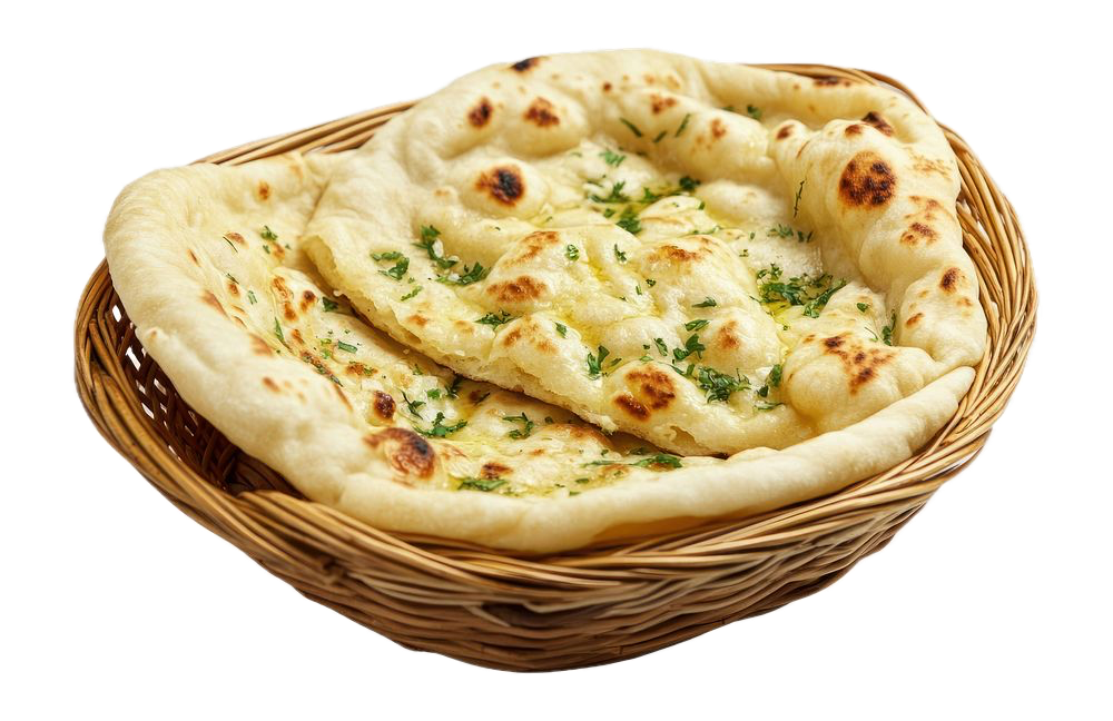 Warm naan brushed with garlic butter and sprinkled with fresh herbs