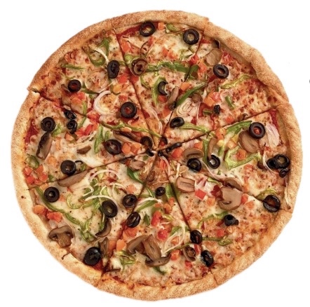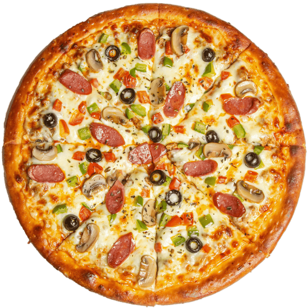 Cheese, pepperoni, olives, mushrooms, corn, green chillies