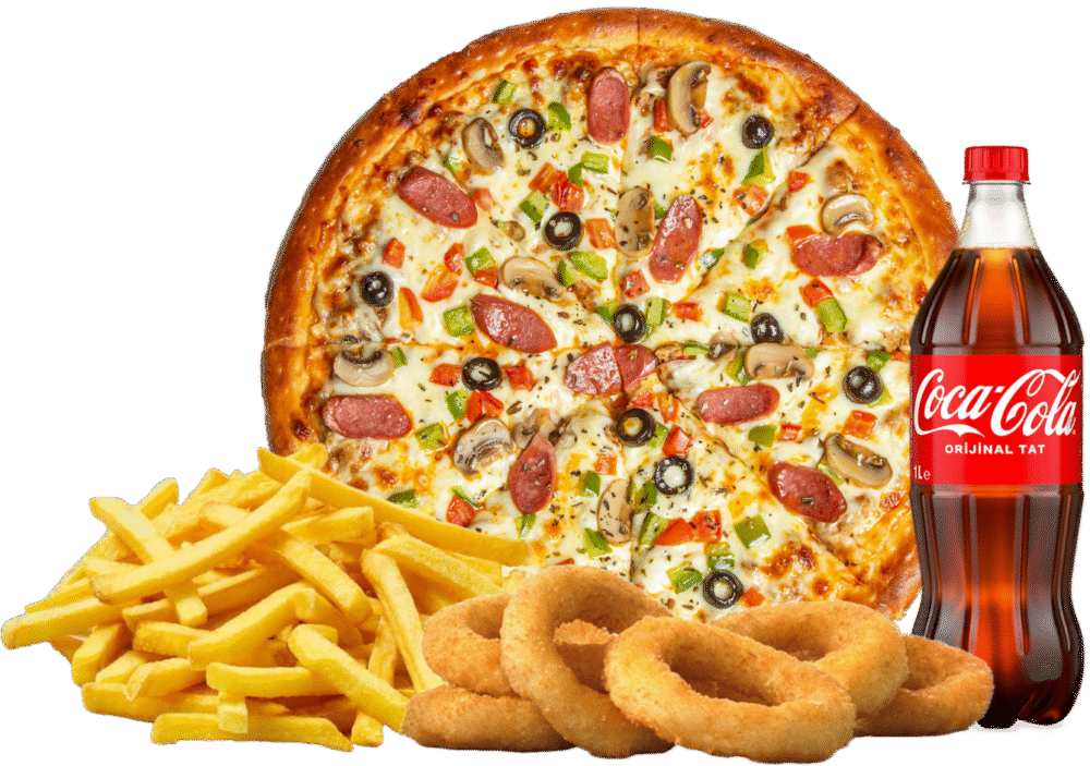 Orta Boy Pizza, Chips, 4 Onion Rings, 1 Lt Drink