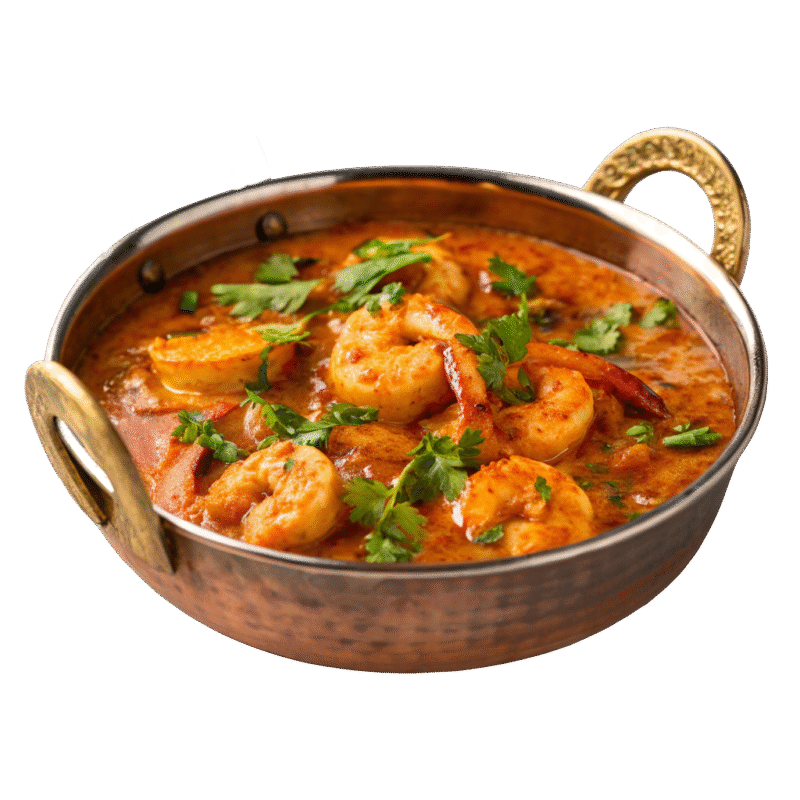 Fresh prawns gently simmered in a flavourful curry sauce made with tomatoes, garlic, and a hint of chilli. Fragrant, savoury, and perfectly spiced