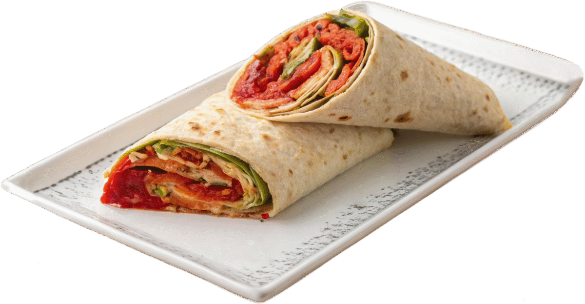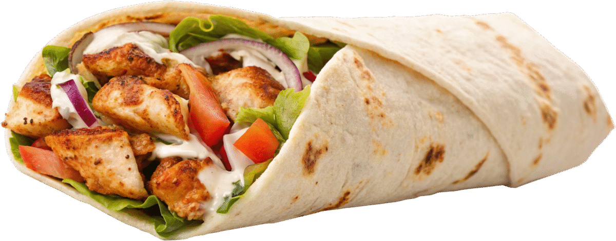 Juicy tandoor-cooked chicken wrapped in flatbread with fresh salad and sauce