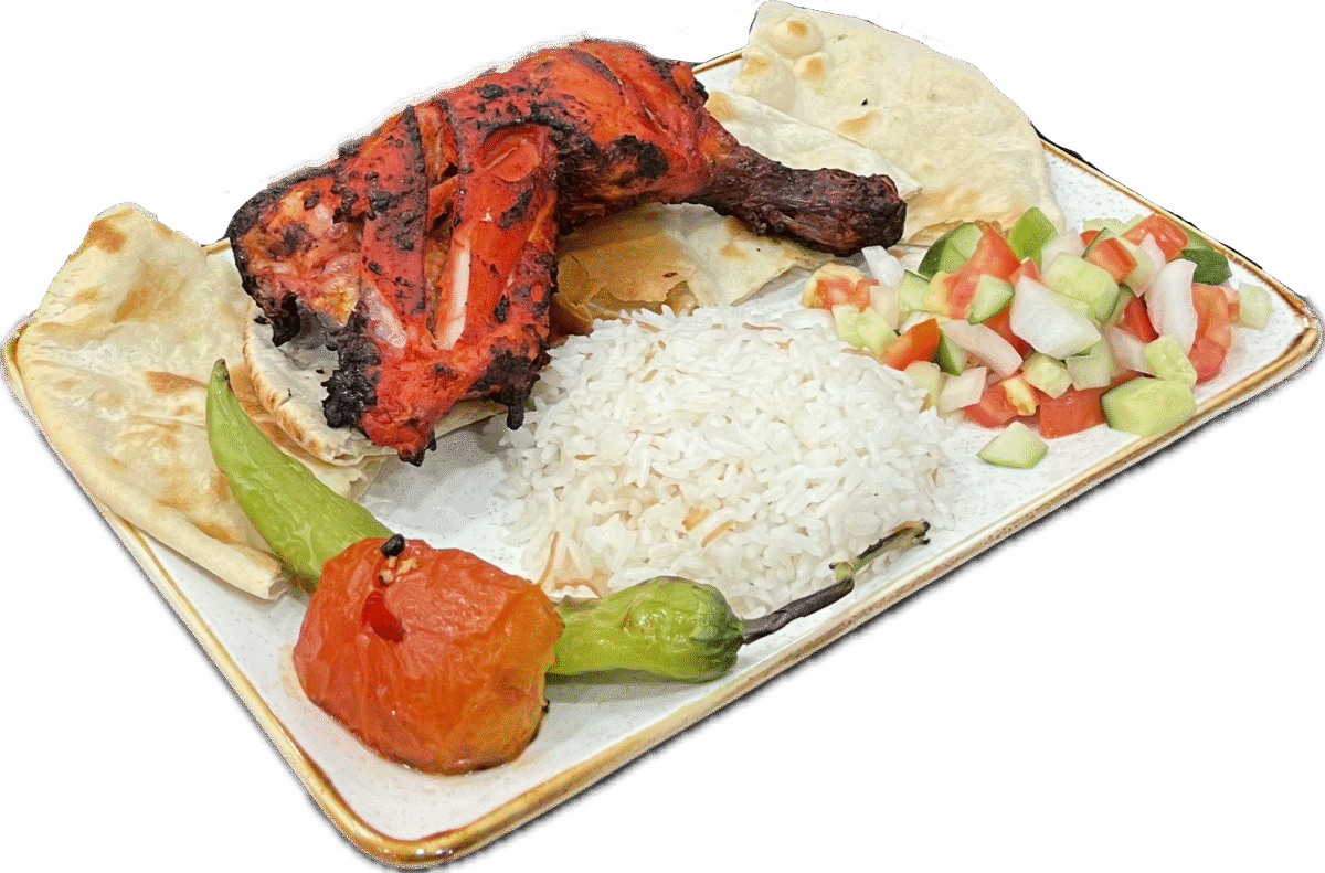 Chicken leg quarter slow-cooked in tandoor for juicy, succulent meat with rich flavour